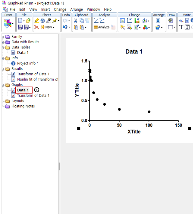 이후에 왼쪽 부분에 'Graphs'-Data① 을 클릭하시면 결과가 생성된 것을 확인할 수 있어요
